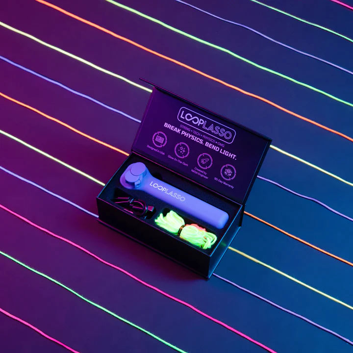 - Built-In UV Blacklight: A built-in 395nm wavelength blacklight illuminates your string, allowing you to seemingly break physics and bend light.